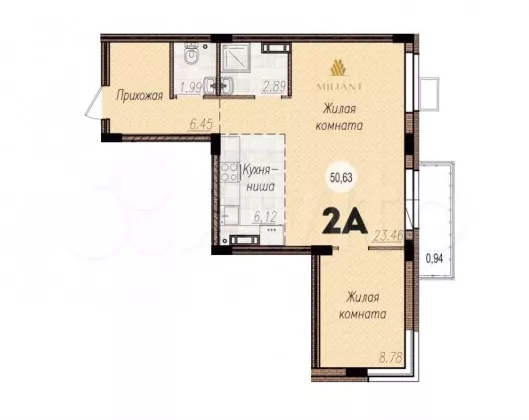 В избранное 2-к. квартира, 50,6 м², 5/15 эт.