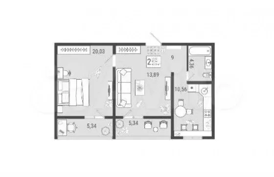 | Комнат в квартире | 2 |