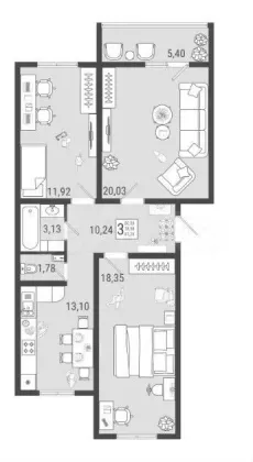 | Комнат в квартире | 3 |