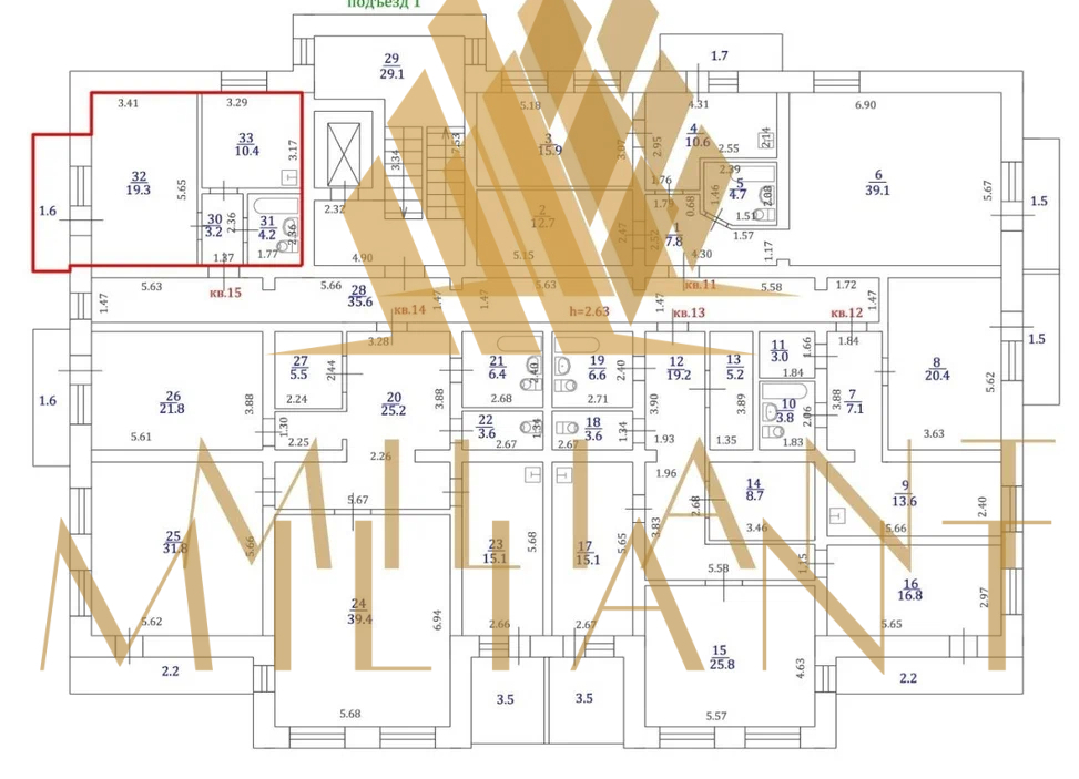 | Жилая площадь | 19 |